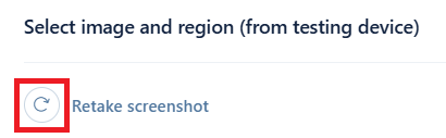 Once the selection window opens, a screenshot from the testing device is loaded. Use your mouse to select an image that you want to store (see no. 1 below). If you wish to store a complete screenshot as an image, avoid the selection.