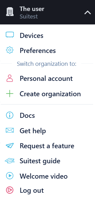 On the right side of the top bar, you can open the Suitest User menu.